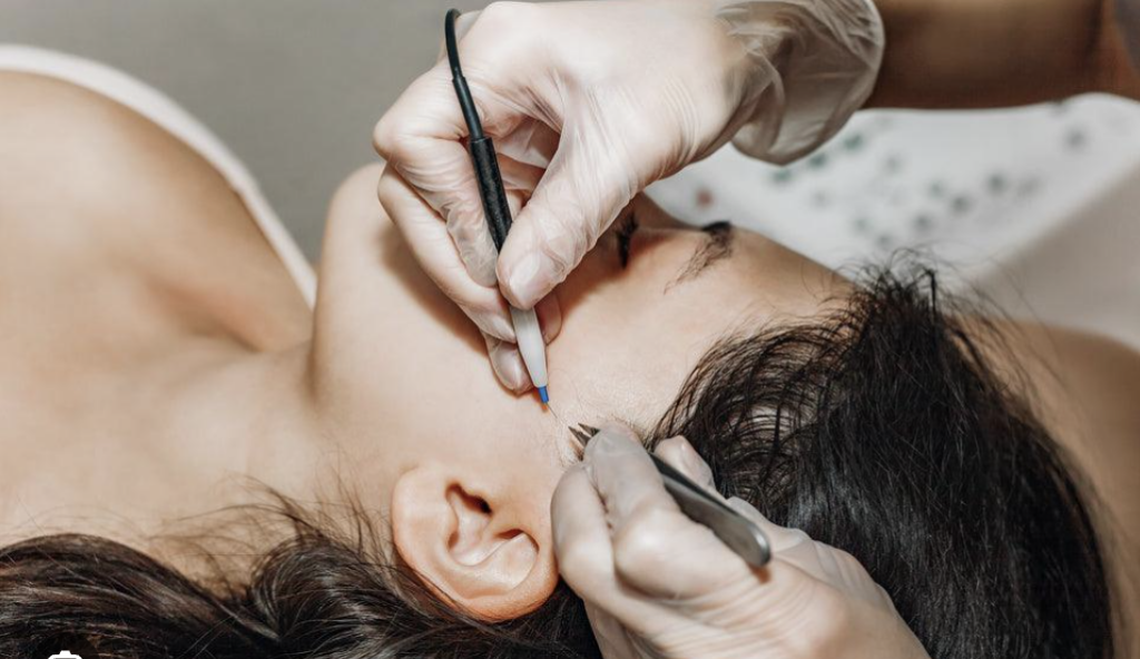 Electrolysis is a highly precise method of permanent hair removal that targets individual hair follicles at the source. An ultra-fine probe is gently inserted into the natural opening of the follicle, where a controlled electrical current disables its ability to produce future hair growth.
